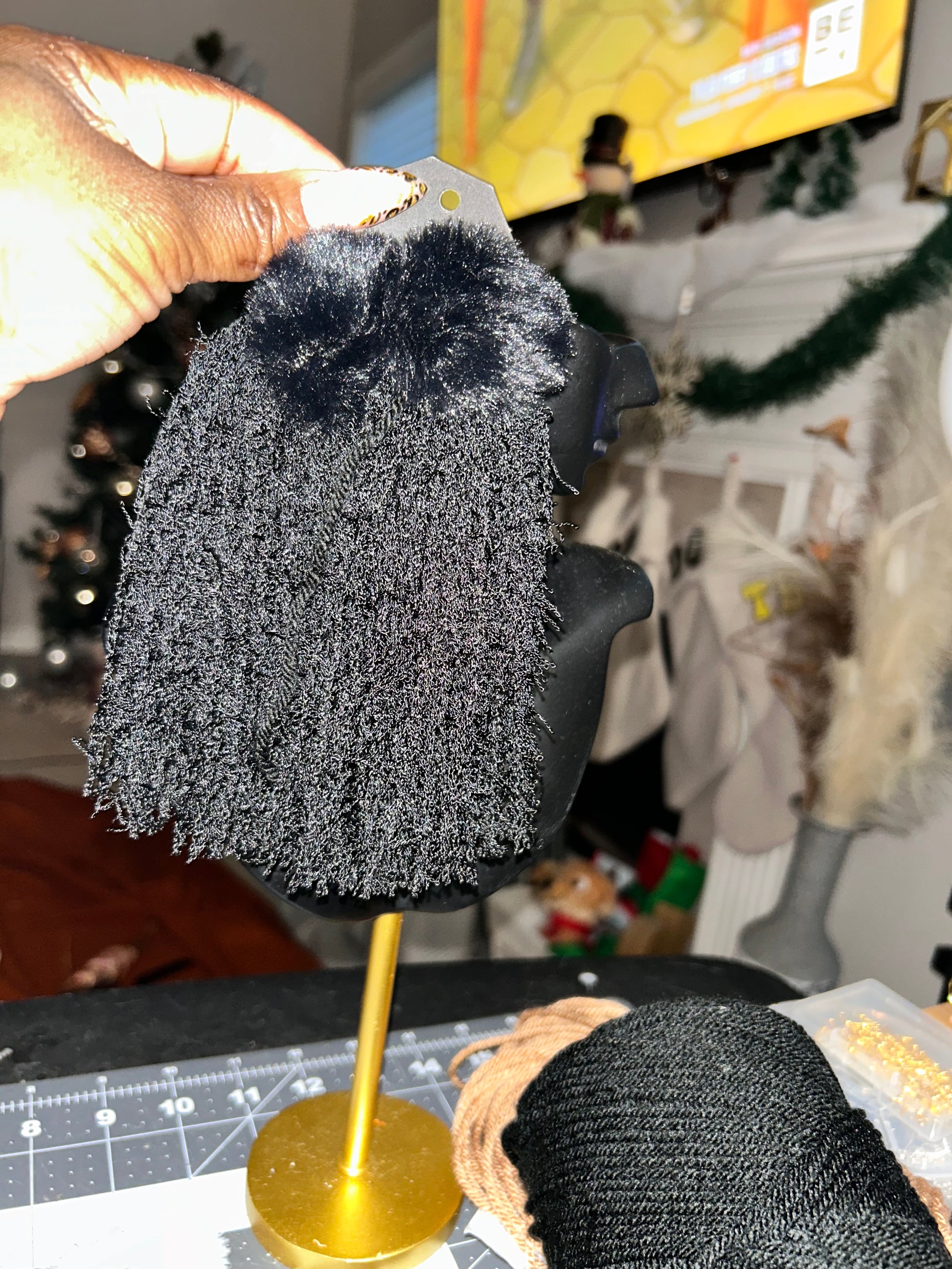 make A fearless statement without Black panther faux Fur & yarn earrings- Bold, sleek, and powerful unapologetically powerful. Designed with rich black faux fur paired with black yarn, these earrings bring drama, confidence, and edge to any look. Perfect for all black outfits or when you want your accessories to speak to you.