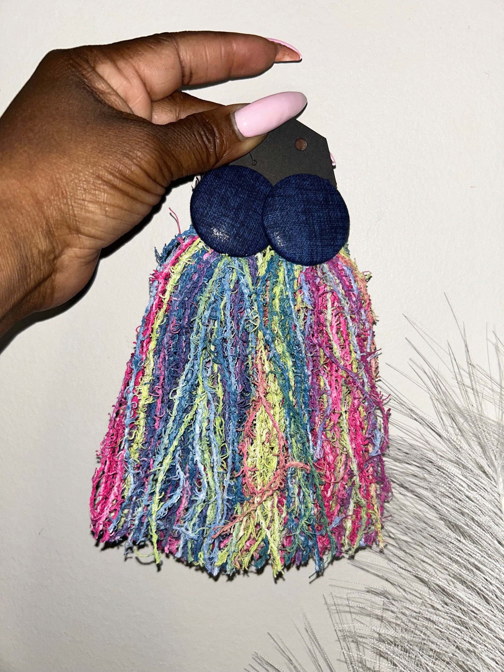 Button Bites earrings feature fabric-covered buttons paired with a yarn bottom for a playful mix of texture and style. Lightweight, handmade, and full of sweet charm.