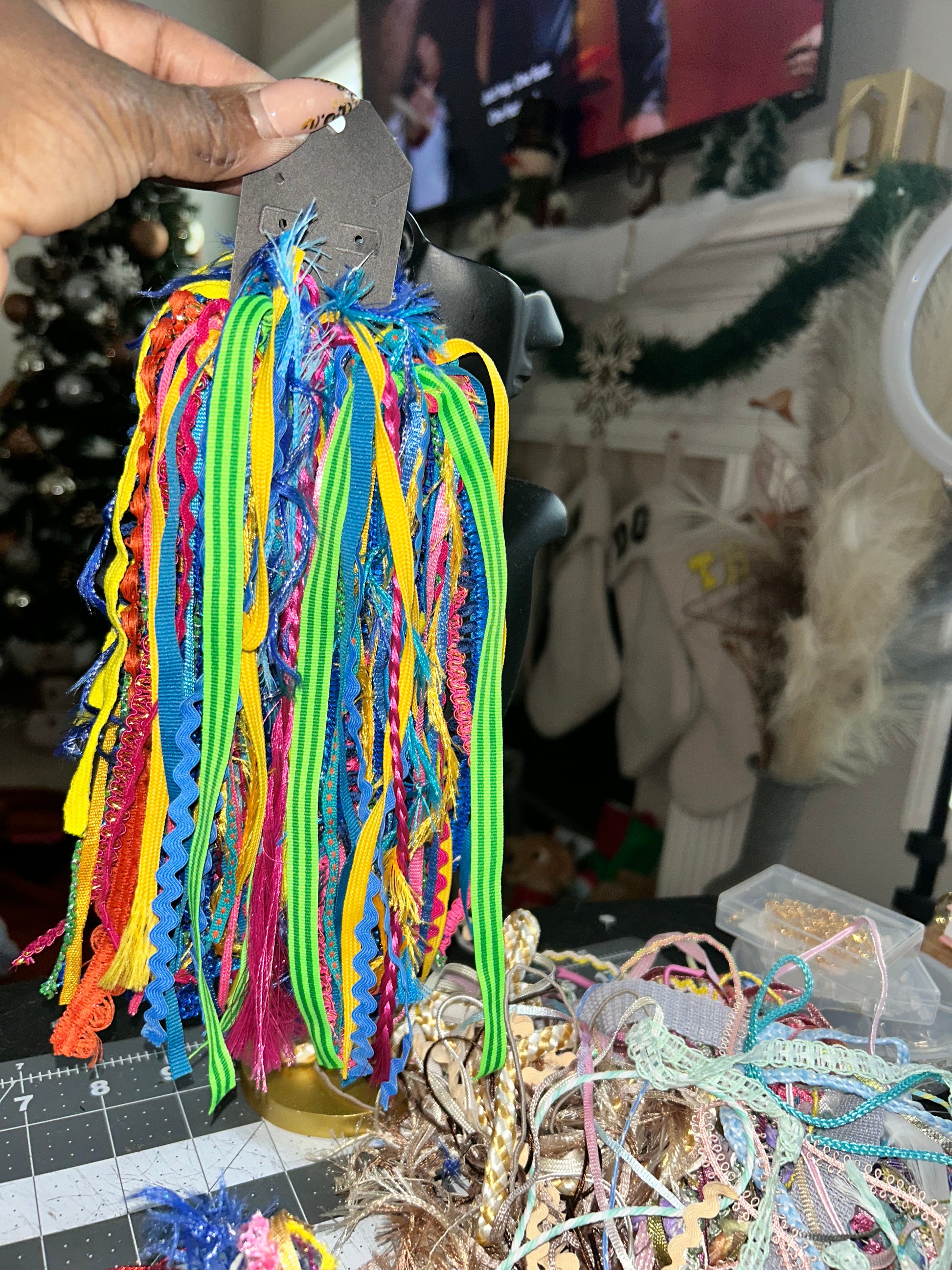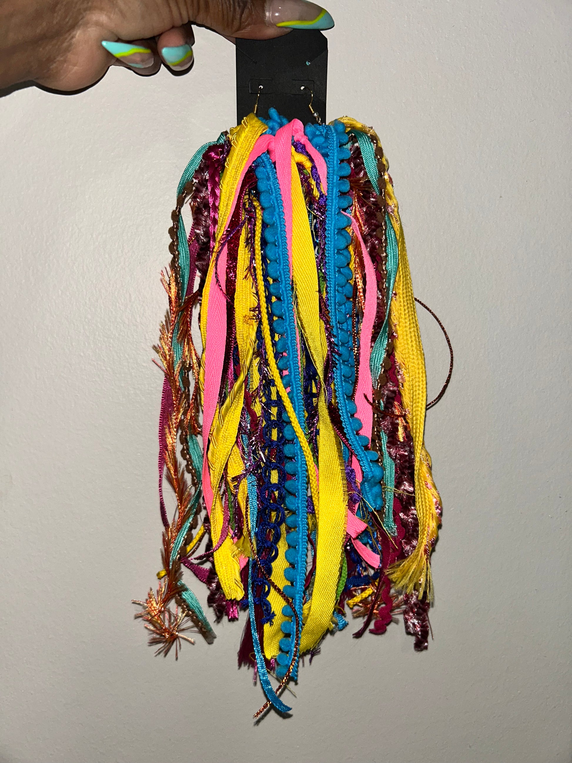 Celebrate Color, movement and happiness with our vibrant and bold colorful ribbon earrings. these bold handmade statement earrings feature a playful mix of color inspired by joy rhythm, and energy of a carnival.