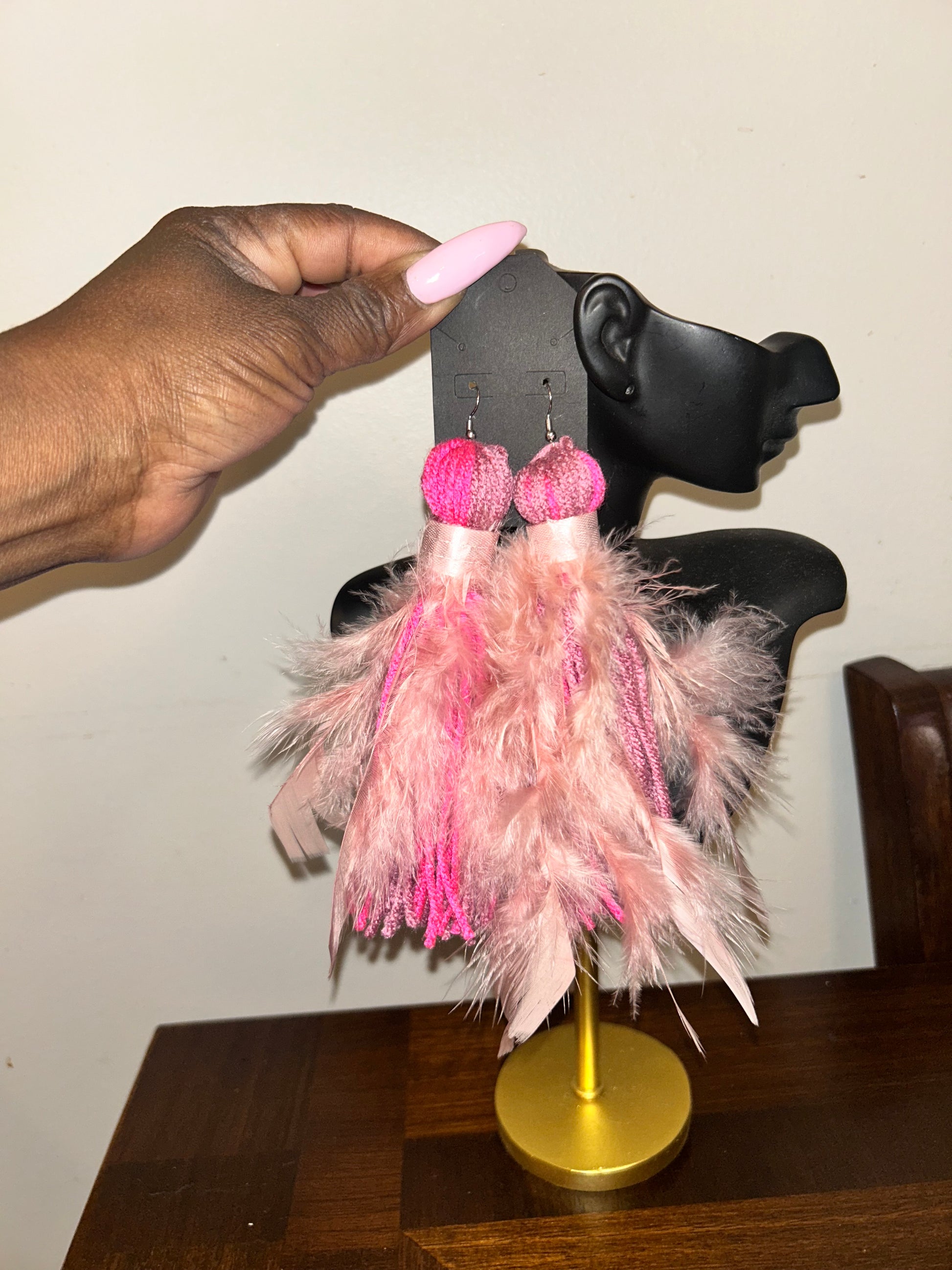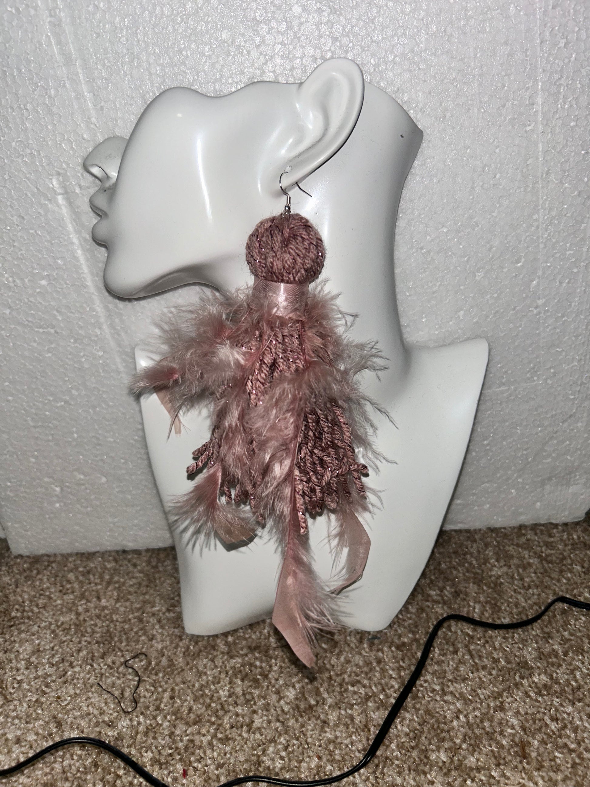 Feathered Cravings earrings feature soft yarn wrapped with delicate feathers, creating a light, textured statement. Available in a variety of colors, lightweight, handmade, and full of sweet style.