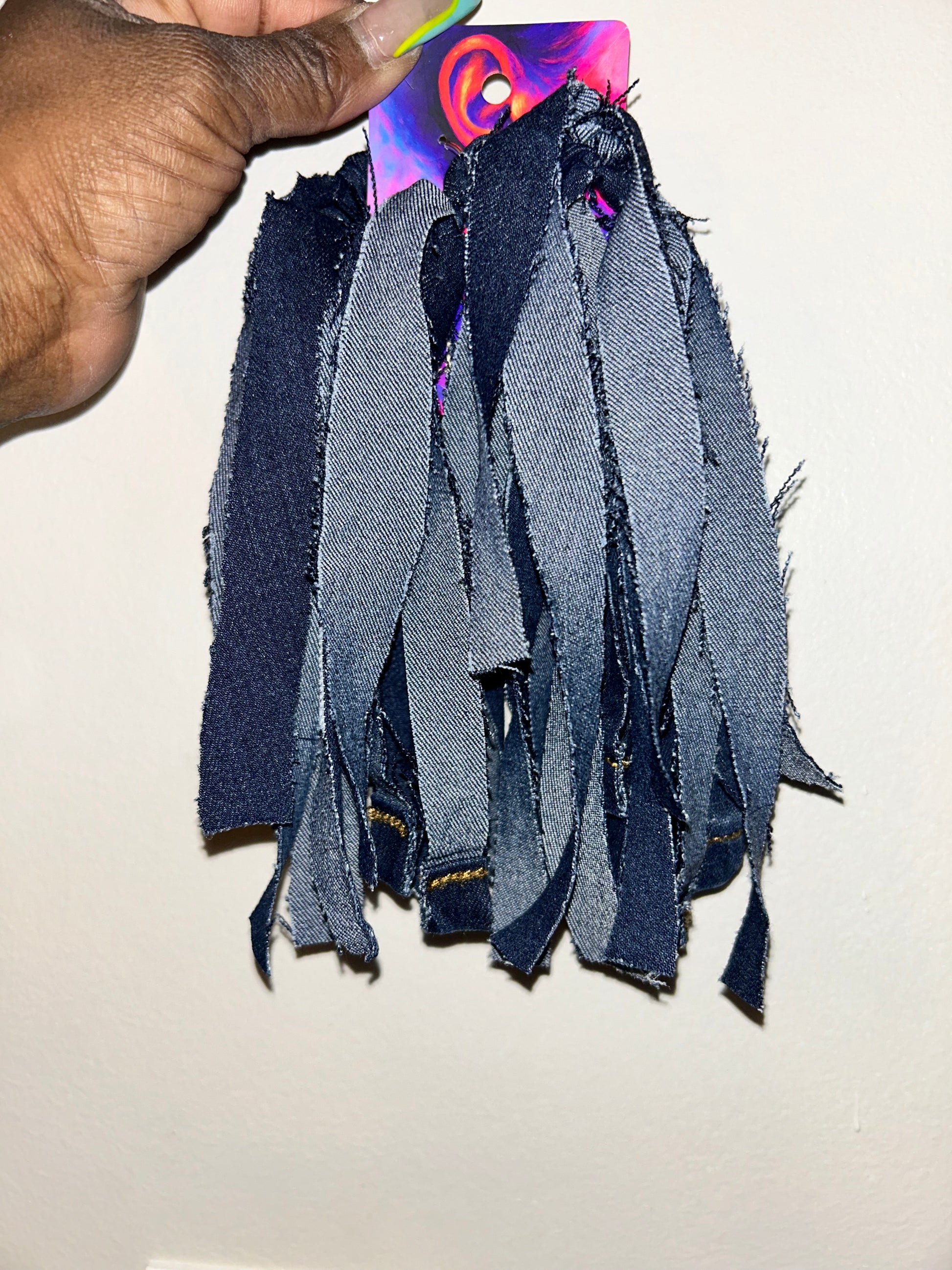 indigo Treat earrings feature textured jean fabric for a casual yet bold statement. Lightweight, handmade, and effortlessly cool.
