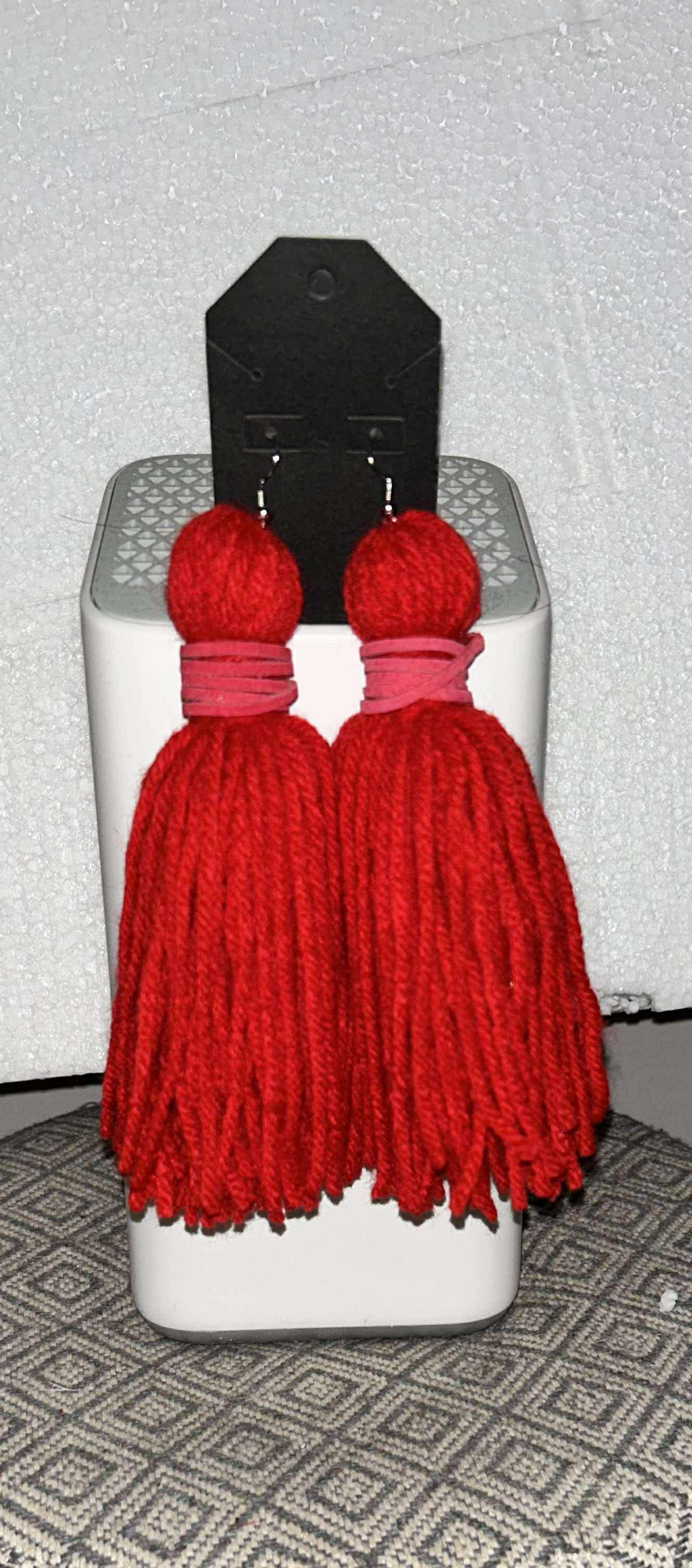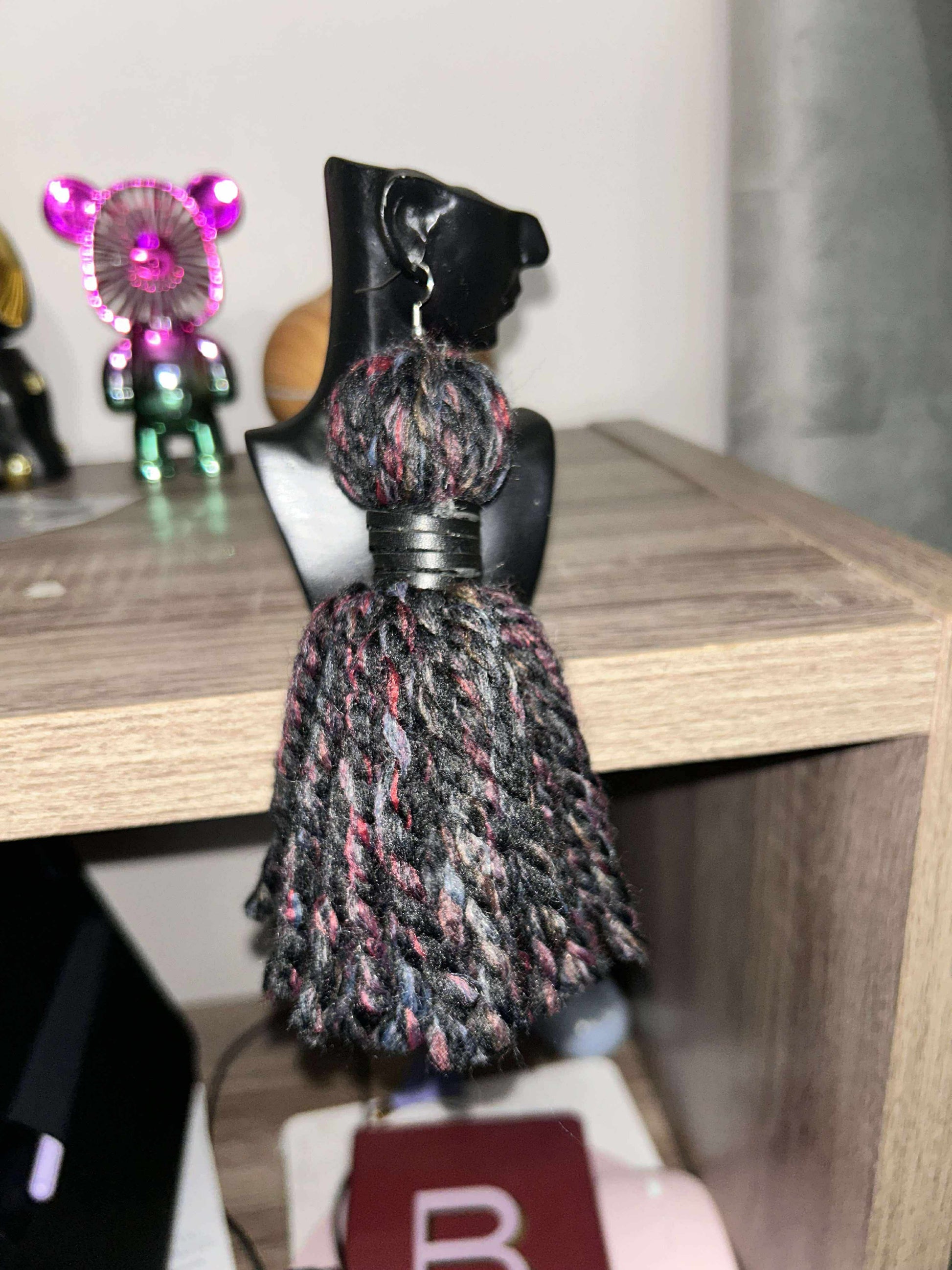 Leather Laced earrings feature soft yarn wrapped with a sleek leather strip for a bold mix of texture and edge. Lightweight, handmade, and effortlessly cool.