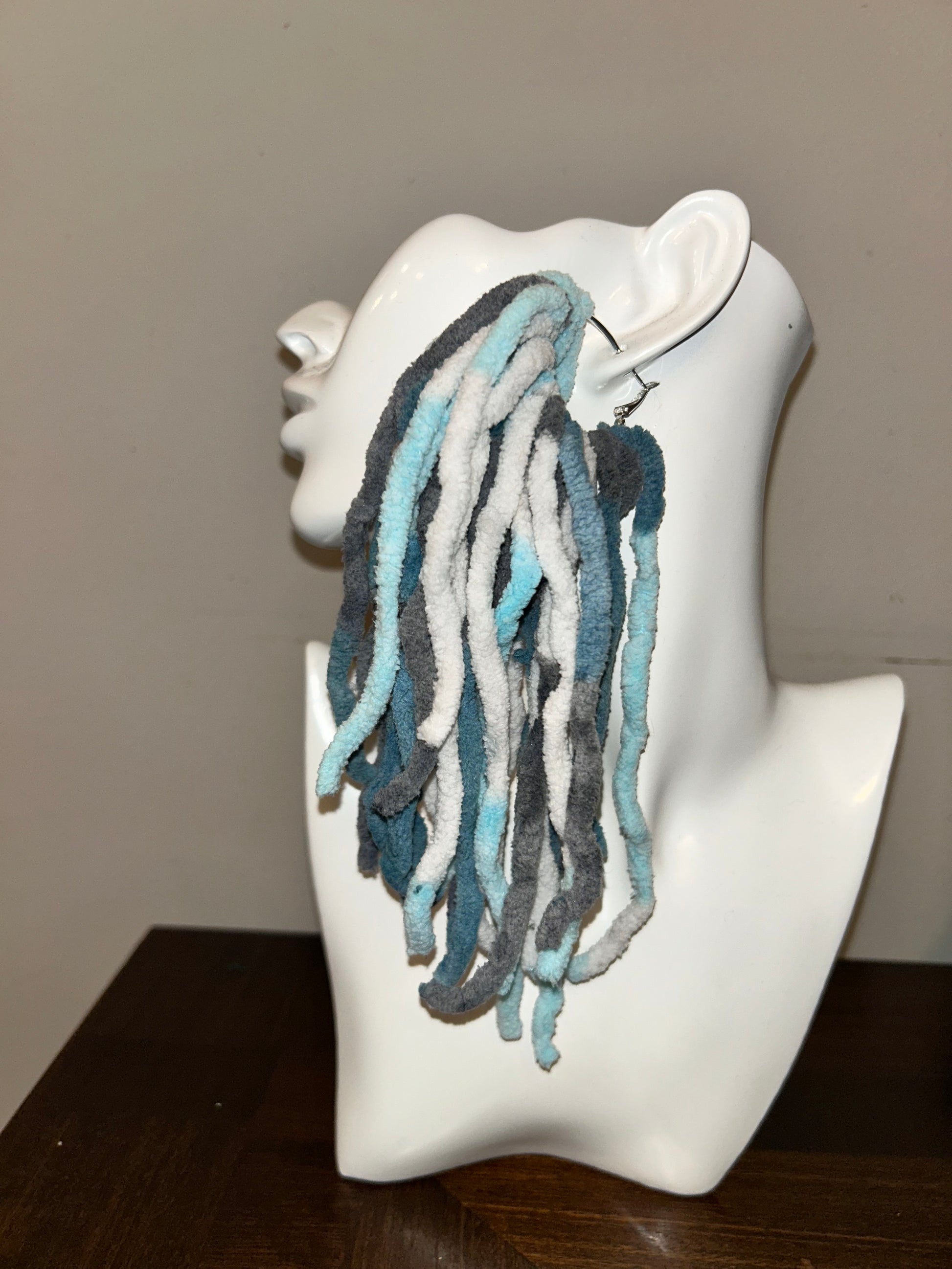 Soft Serve earrings feature plush, soft multicolor yarn for a gentle pop of color and cozy style. Lightweight, handmade, and sweetly effortle