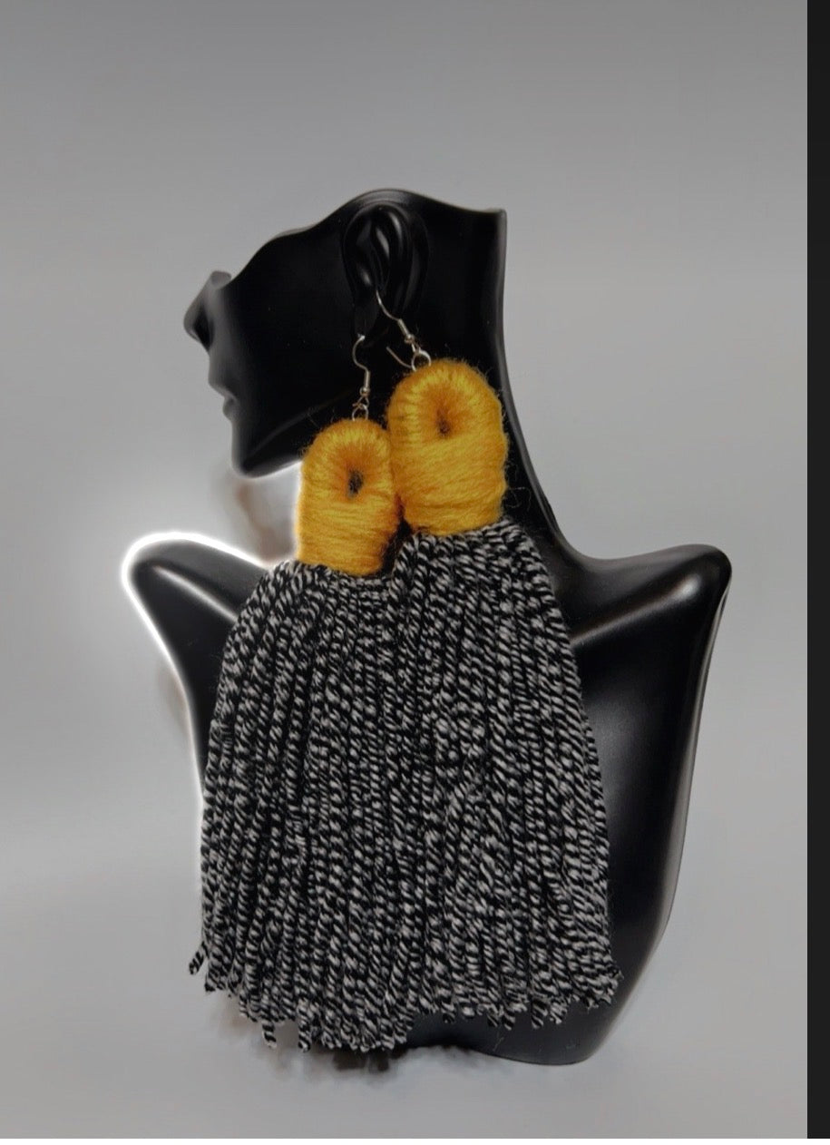 Wild Cravings earrings feature bold zebra-print yarn paired with a sleek solid bottom for the perfect mix of pattern and polish. Lightweight, handmade, and unapologetically fierce.